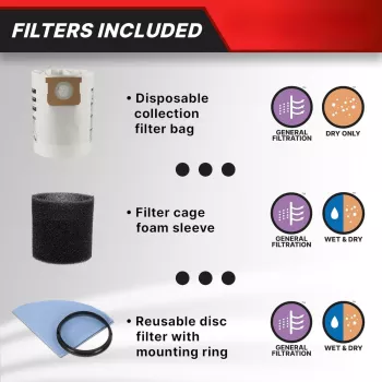 2.5 Gallon Wet Dry Vacuum, Wall Mounted, 2.5 HP Motor, Portable & Powerful