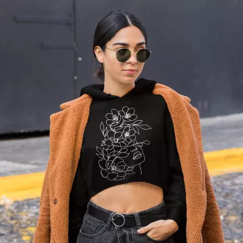 Floral line face Women's Cropped Hoodie - Outline graphic Hooded Sweatshirt - Flowers print Super Crop Top Hoodies